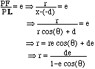 If we put the focus F at the origin, and directrix L at x = - d, then we can derive a polar equation for the conic section.